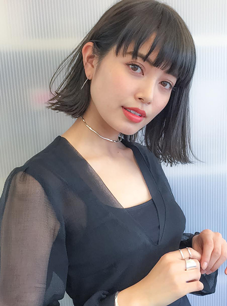 切りっぱなし外ハネボブ MENU カット&ケアカラー ¥14,900〜※トップスタイリスト料金¥トップスタイリスト料金¥500頂きます SHOP AOYAMA STAFF 切りっぱなしボブに、6トーンのブルーグレージュで大人っぽくもオシャレに!!