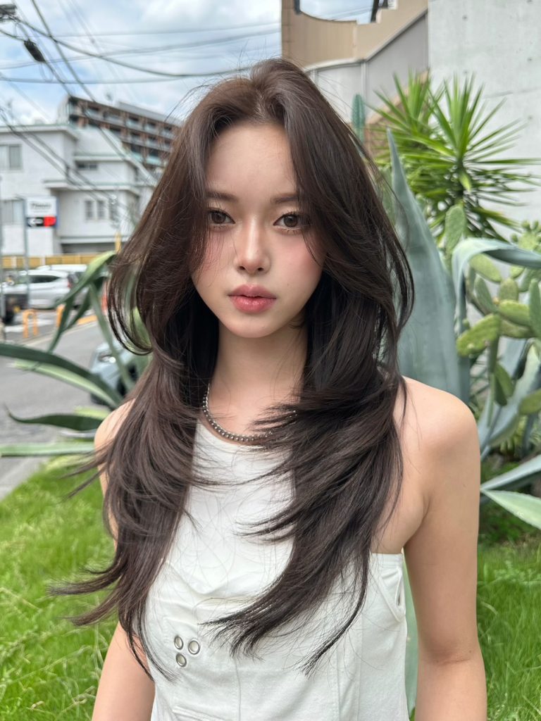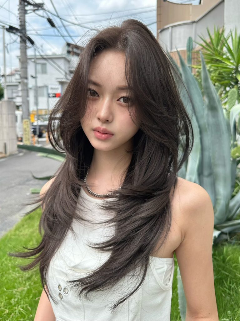 ハッシュワンカールレイヤー MENU カット&プレミアムケアカラー SHOP HARAJUKU STAFF 杉江 龍彦 高めレイヤーに色気の出るカーテンバング ❤︎使用スタイリング剤:GLOSSING SPRAY