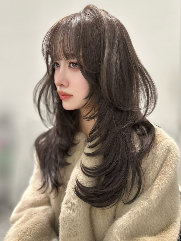 ぱつっとバングに毛先は重めなシャギーレイヤーがこの冬、気分♡