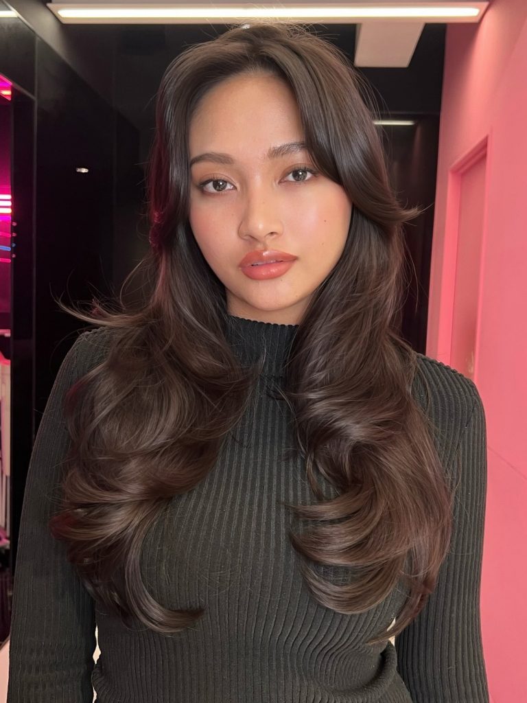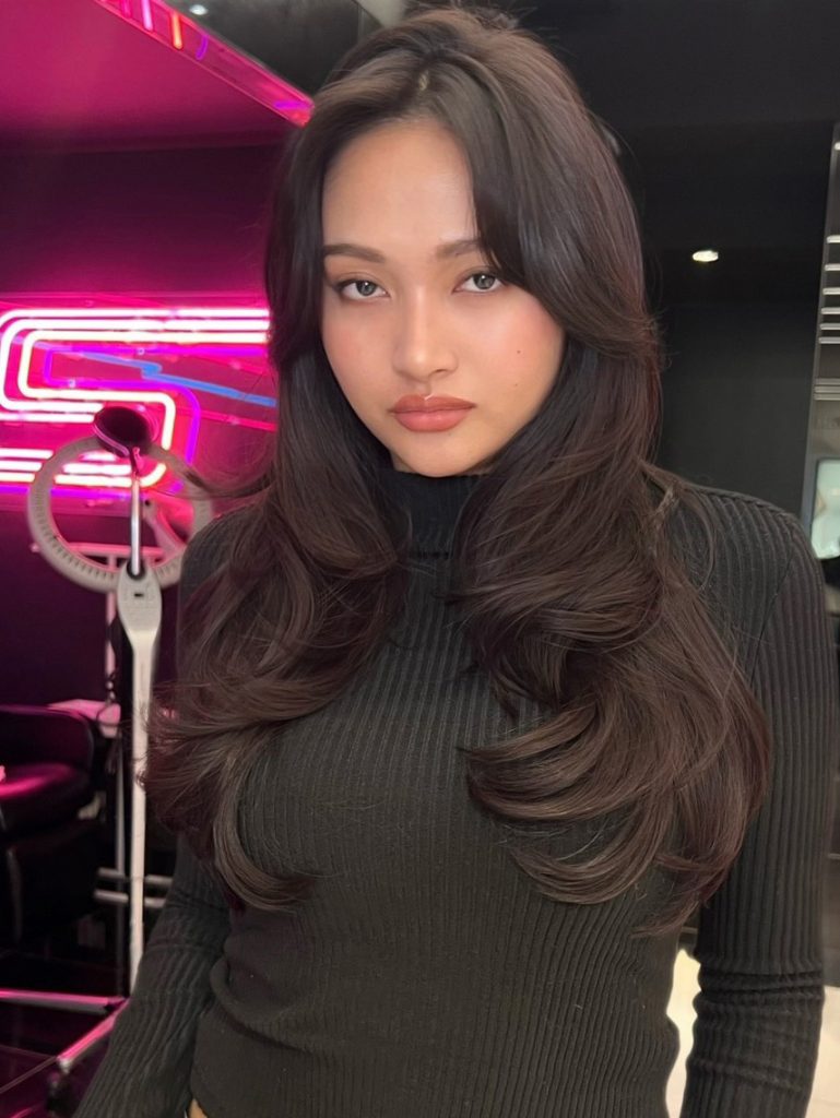 モカブラウン×海外ボリュームレイヤー♡ MENU カット&プレミアムケアカラー SHOP HARAJUKU LEAP STAFF 栗山 千夏 肌馴染み良いリッチな艶感と、エアリーなレイヤーカット♡ ❤︎使用スタイリング剤: GLOSSING SPRAY