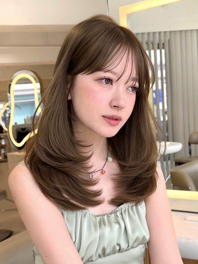 ナチュ盛れ❤︎レイヤーカット×オリーブベージュ MENU カット&プレミアムケアカラー SHOP AOYAMA PEAK STAFF 石田 華穂 ワンカールで可愛いレイヤーと赤みを抑えて引き出す透明感 ❤︎使用スタイリング剤:SEEK MOISTURE