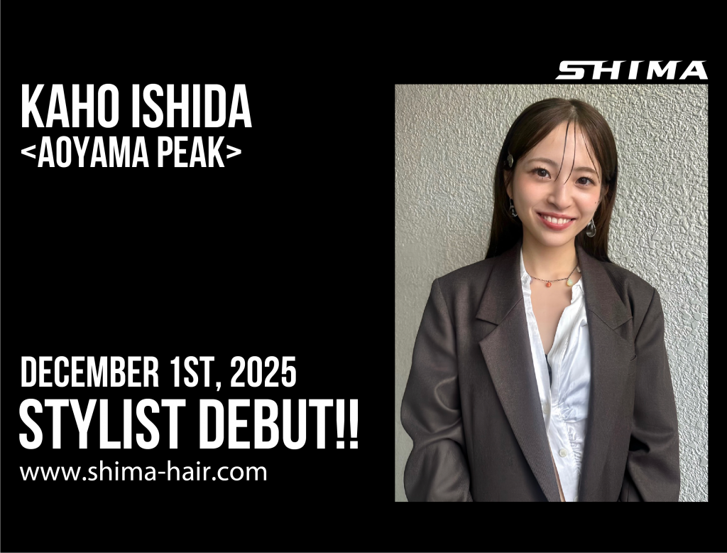 2025.11.28 (Fri)New「石田 華穂」STYLIST DEBUT!!! SHIMA AOYAMA PEAK [KAHO ISHIDA] 2025年12月1日より、スタイリストデビュー致します。 → KAHO ISHIDA web page