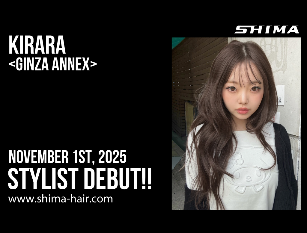 2025.11.13 (Thu)New「KIRARA」STYLIST DEBUT!!! SHIMA GINZA ANNEX [KIRARA] 2025年11月1日より、スタイリストデビュー致しました。 → KIRARA web page